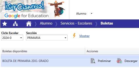 Los alumnos pueden consultar este documento escolar desde el portal, así como descargarlo para guardarlo localmente en su equipo de cómputo.