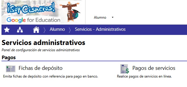 En la sección de Servicios administrativos se pueden realizar consultas y pagos relacionados con los conceptos de cobro de sus servicios educativos.